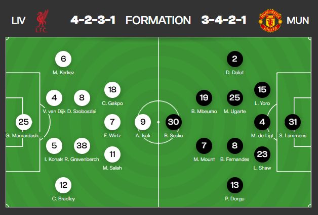 前腰: 薩拉赫(右)、維爾茨(中)、加克波(左)