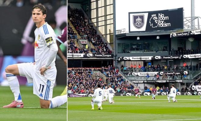 雷速體育10月19日訊 據(jù)《每日郵報(bào)》報(bào)道,在伯恩利主場(chǎng)對(duì)陣?yán)澛?lián)的比賽中,當(dāng)兩隊(duì)其他球員集體做出單膝下跪的反種族歧視手勢(shì)時(shí),特夫摩爾球場(chǎng)的部分觀眾發(fā)出了噓聲,而利茲聯(lián)前鋒勒溫則拒絕參與這一動(dòng)作。